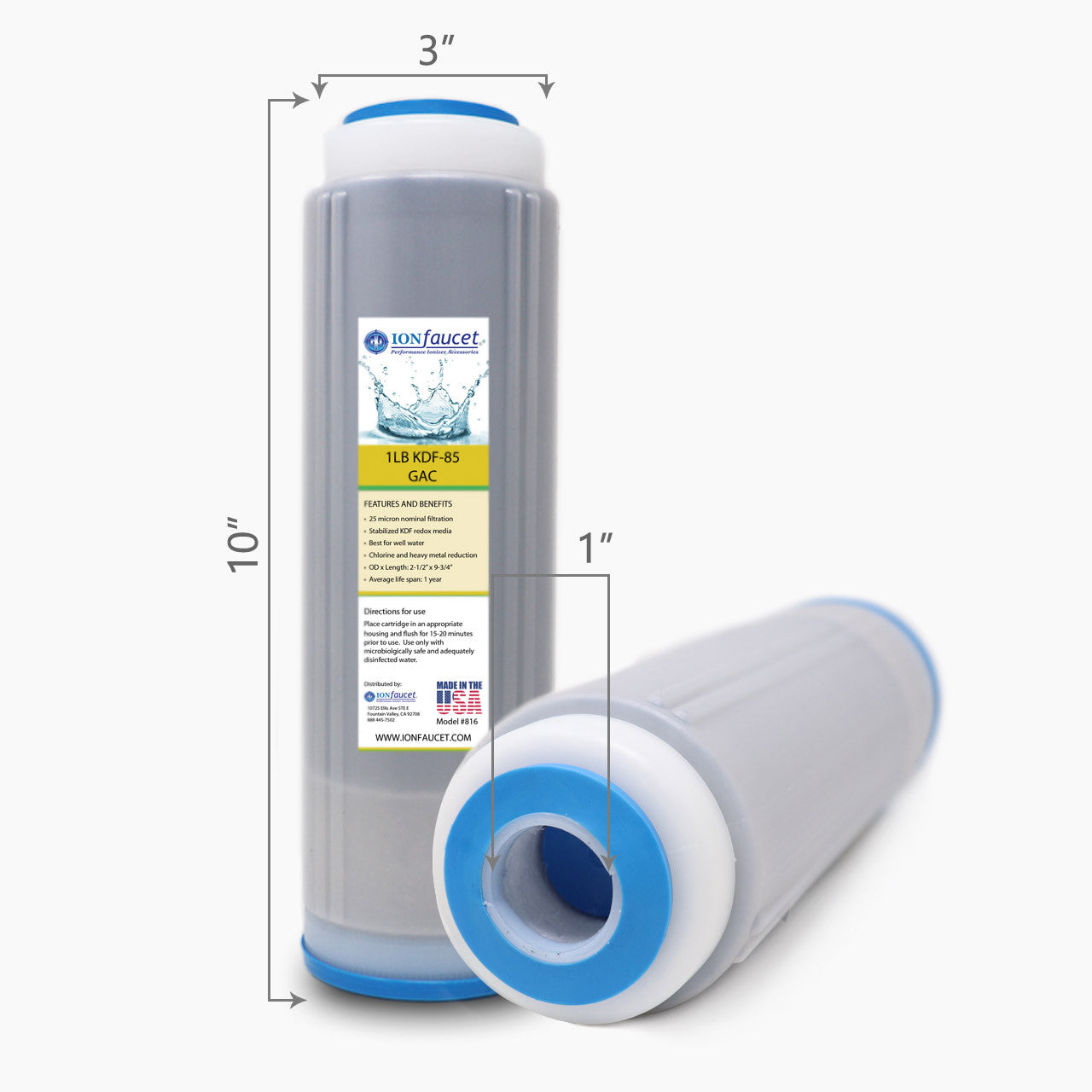 This coconut shell granular activated carbon (GAC) is used in combination with KDF media to significantly extend the life of filter cartridges. KDF-85 media removes hydrogen sulfide and reduces ion by the redox process and filtration. Both KDF redox media are bacteriostatic and inhibit the growth of microorganisms in the filter.