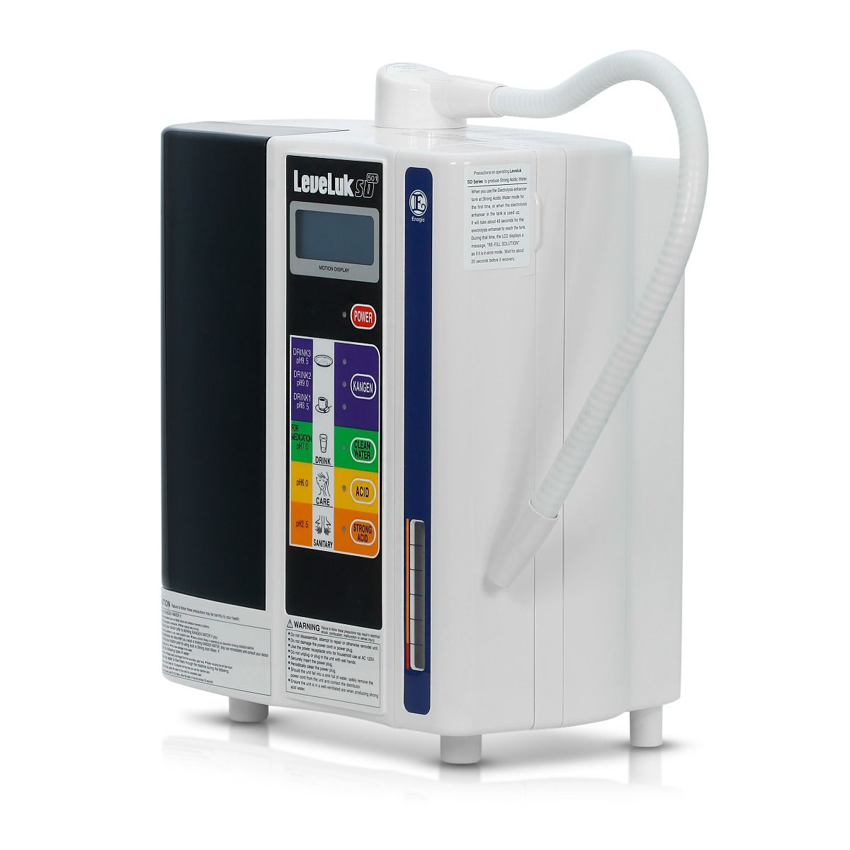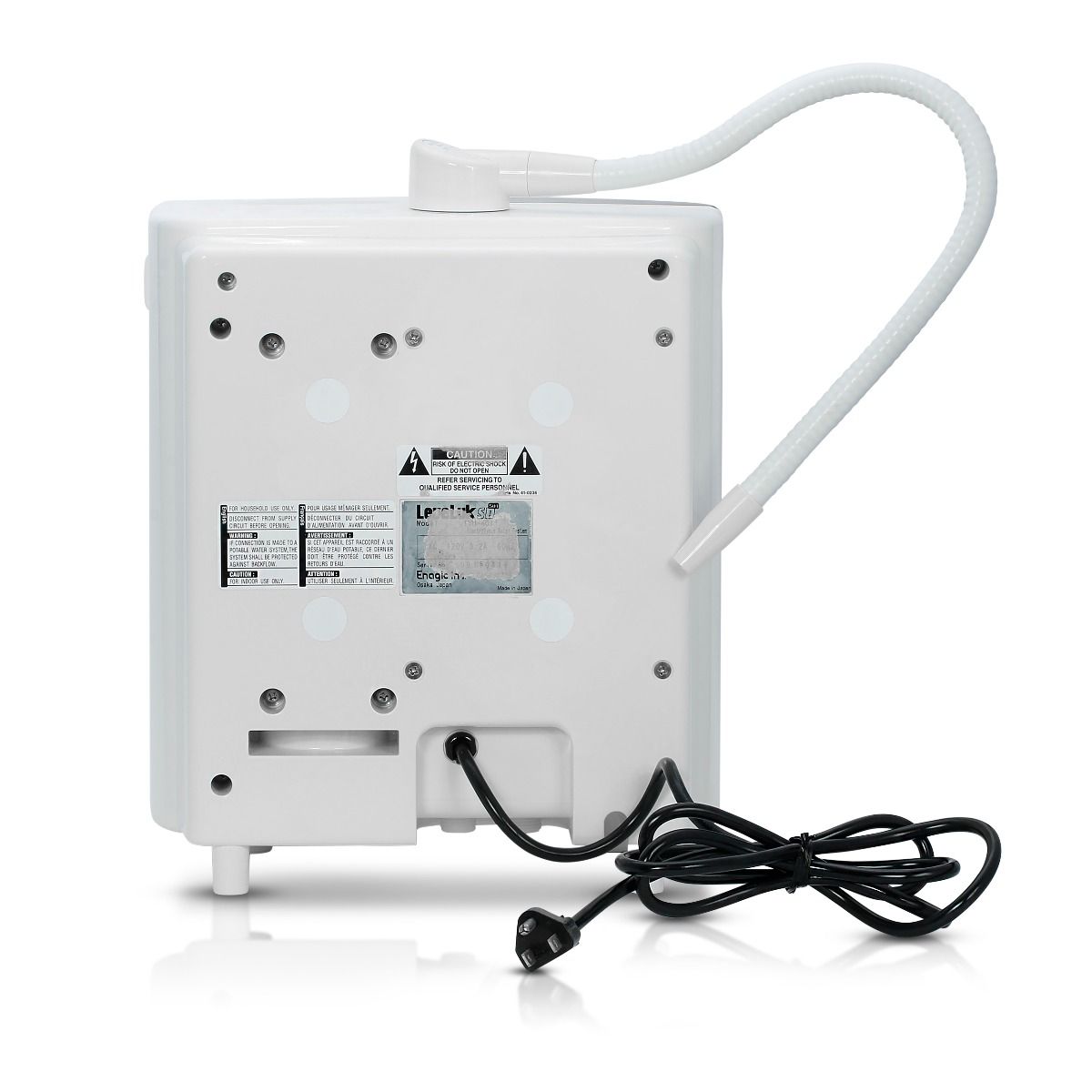 The continuous ionized electrolysis water generator system. Fully-equipped with a built-in electrolysis chamber featuring a large LCD panel, clear voice prompts, and seven platinum-coated titanium plates.